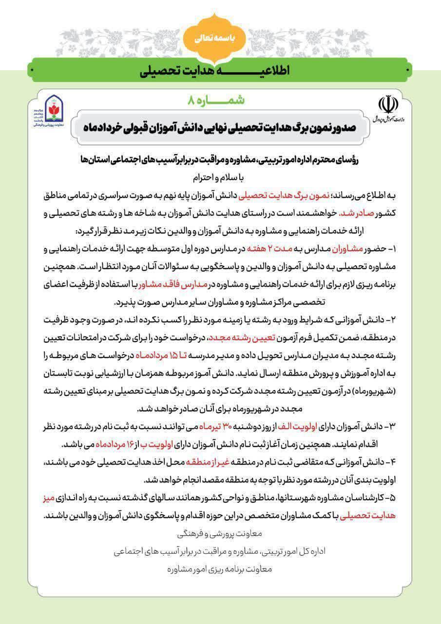 دانش آموزانی که شرایط ورود به رشته یا زمینه مورد نظر را کسب نکرده اند می توانند درخواست تعیین رشته مجدد را به مدیران مدارس ارائه نمایند.💯