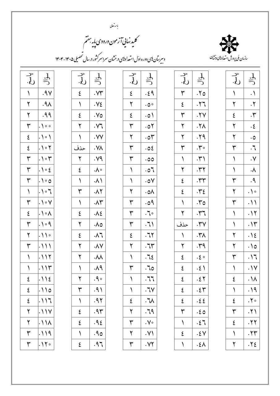 ✅ کلید نهایی آزمون تیزهوشان ۱۴۰۴